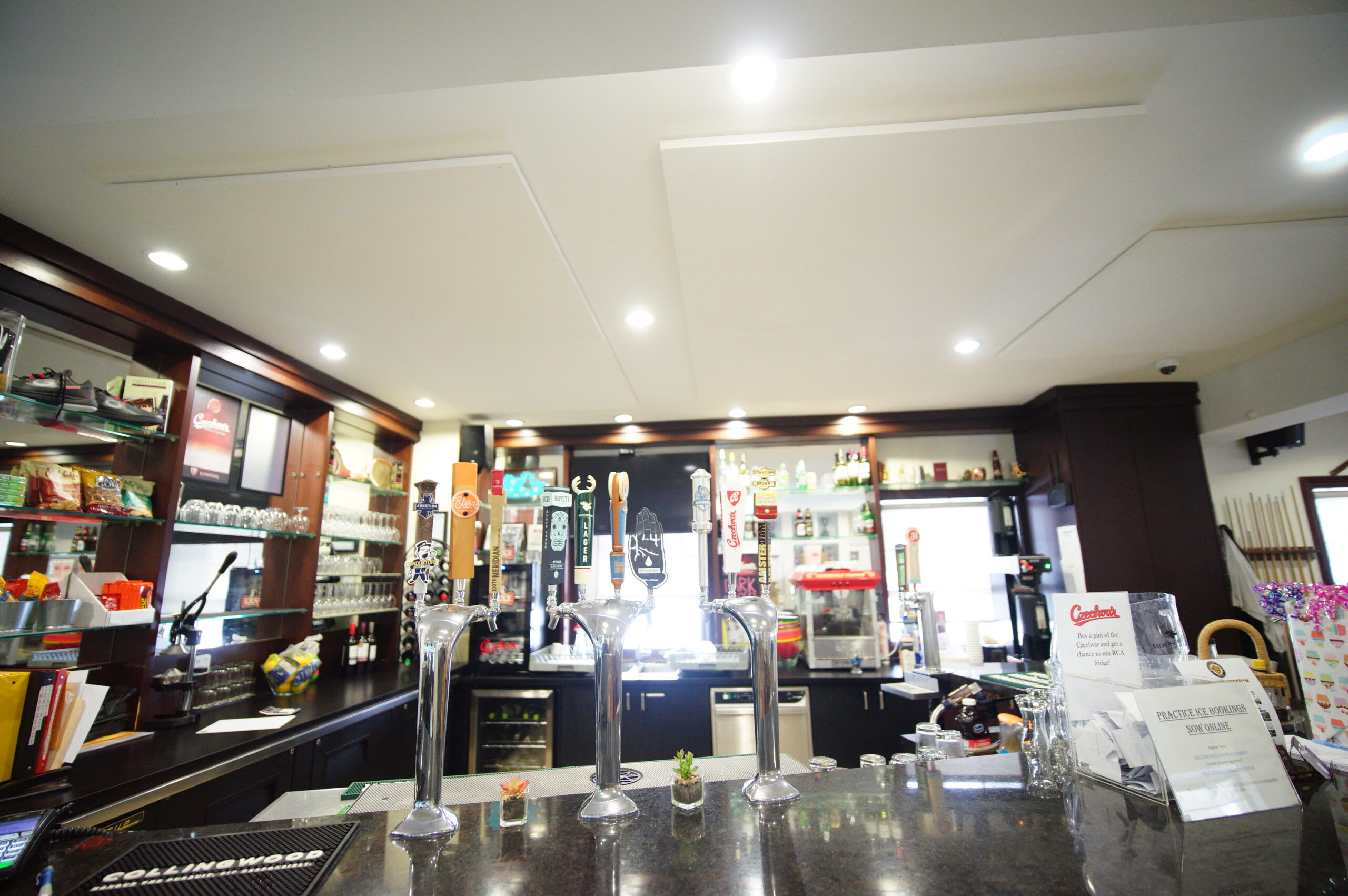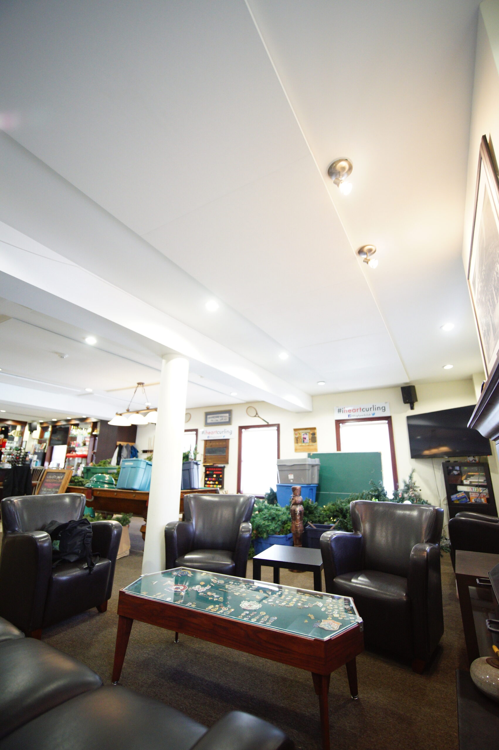 OCTAV was engaged by High Park Curling Club to improve acoustical comfort in the main lounge overlooking the curling lanes. Our work combined careful acoustical measurement, layout design, and coordination to ensure the panels reduced reverberation while maintaining the clean aesthetics of the space.