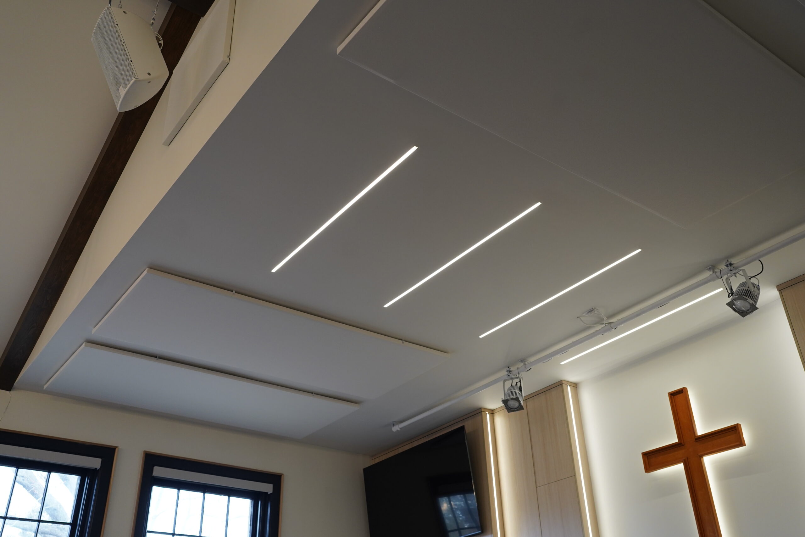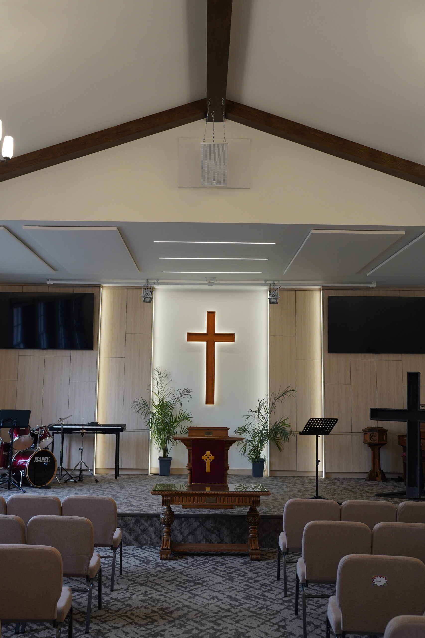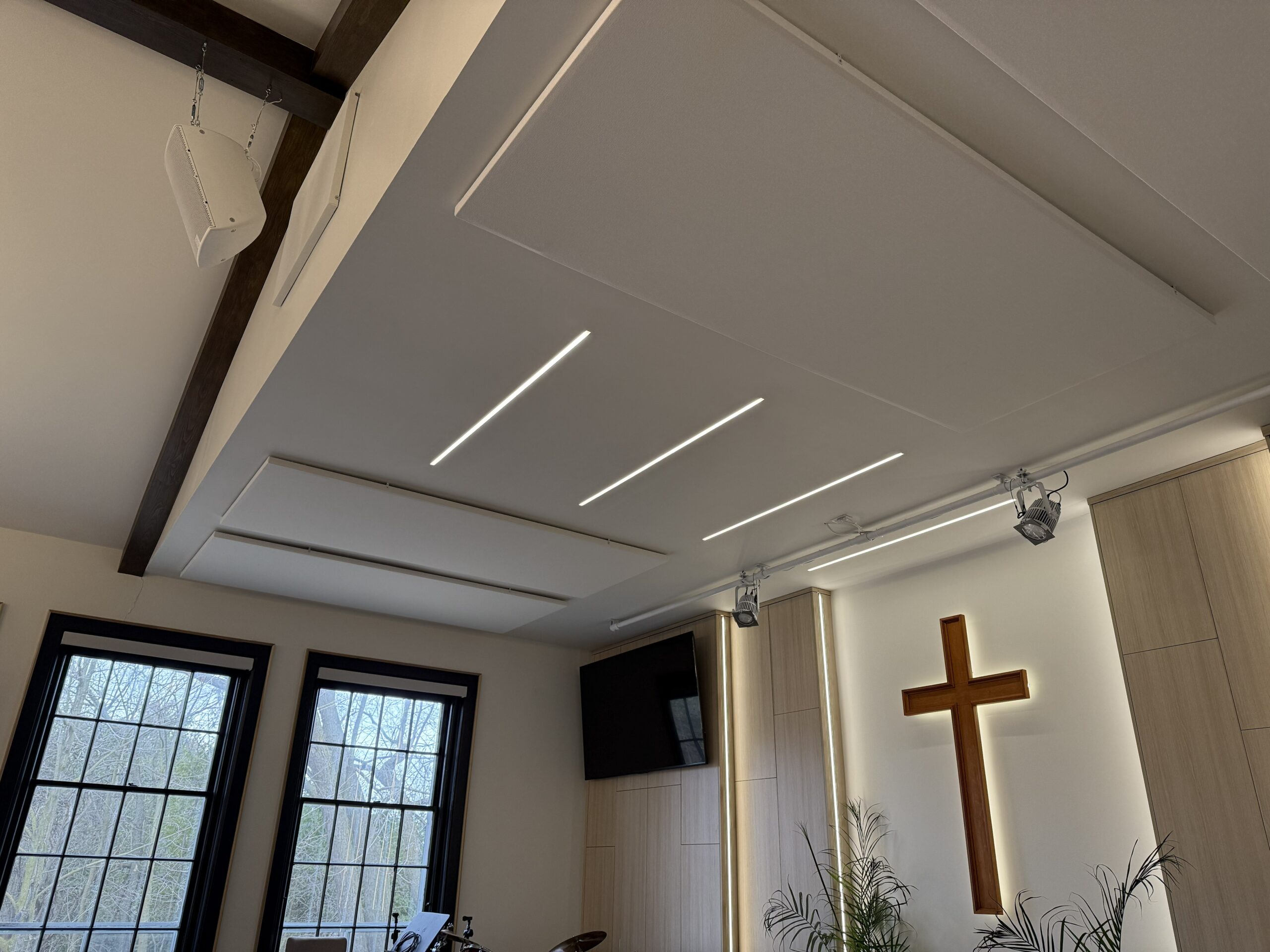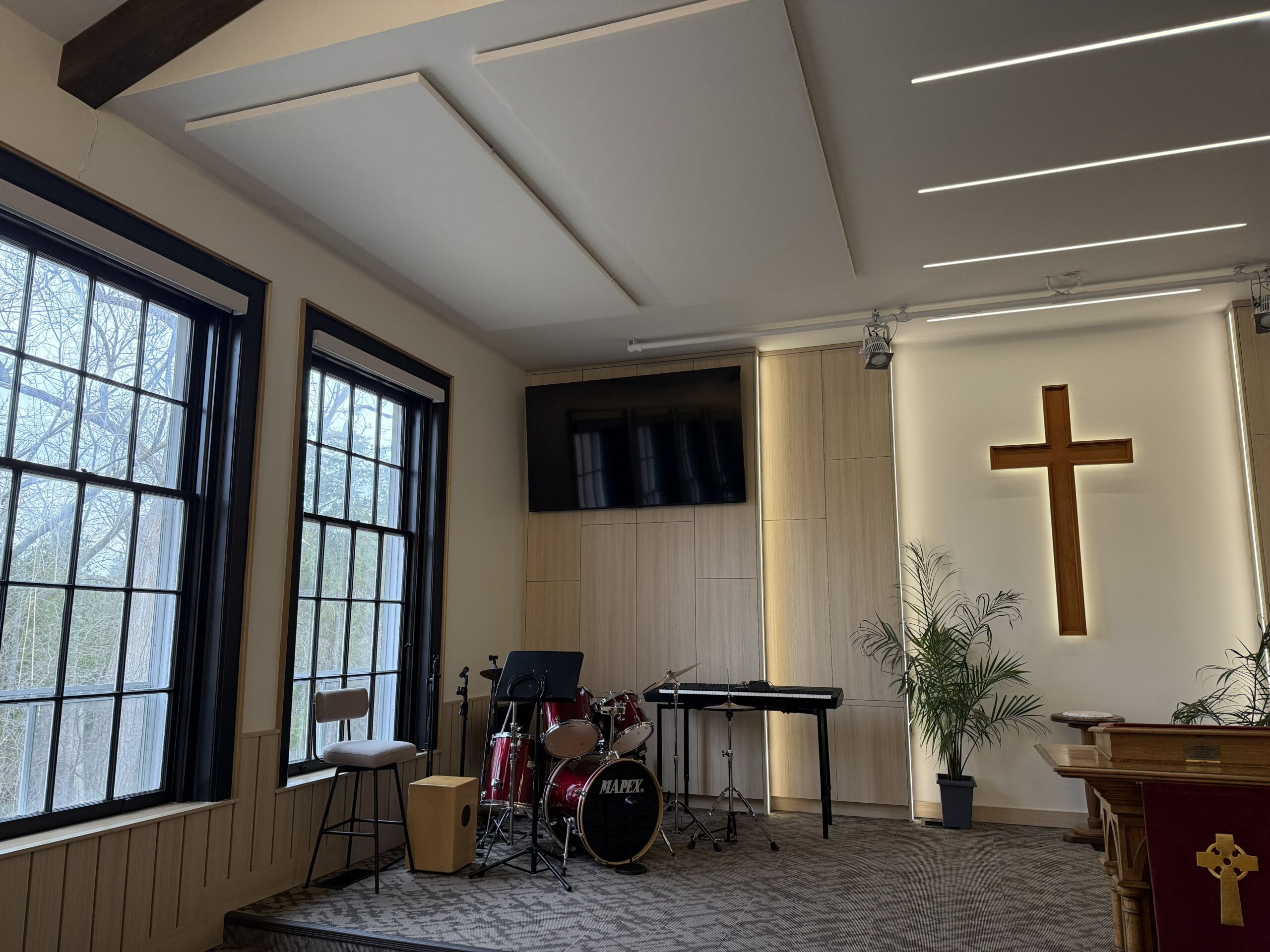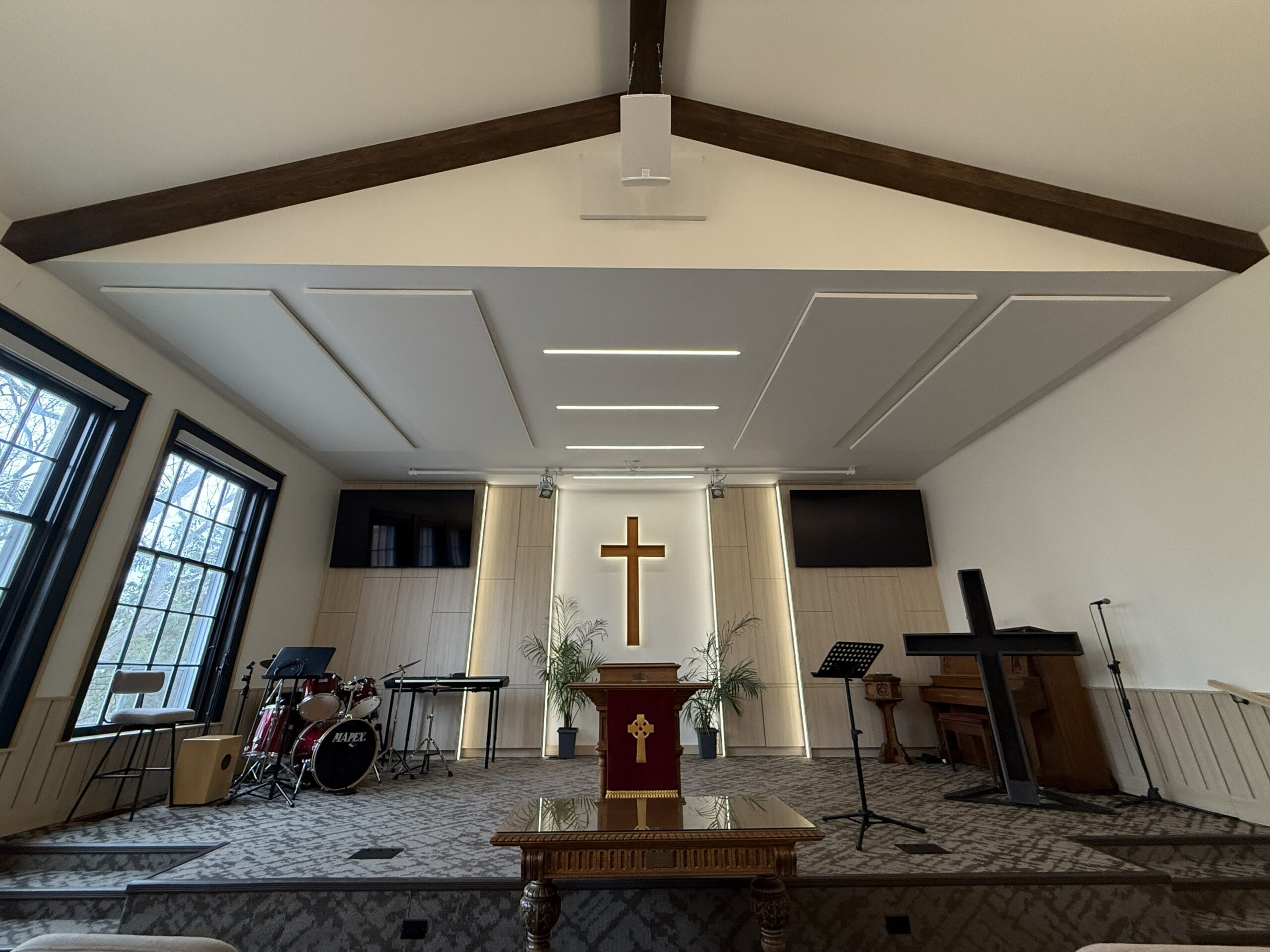 OCTAV Acoustics provided acoustical consulting services for the renovation of the The Well Community Church in King City, Ontario. The design intent was to control undesirable reflections from the loudspeaker system and provide sufficient low-frequency sound absorption while maintaining a lively acoustical environment for congregational singing and participation.